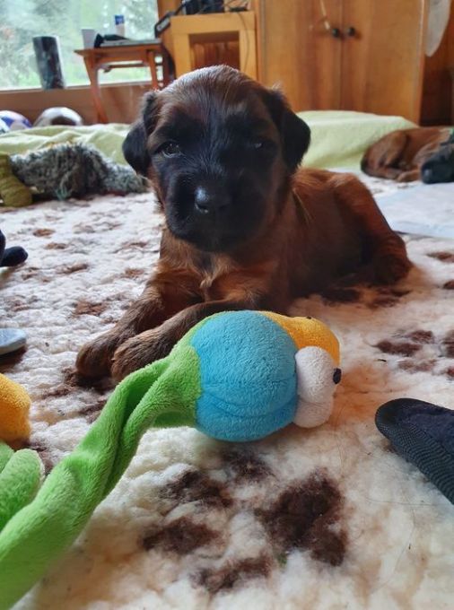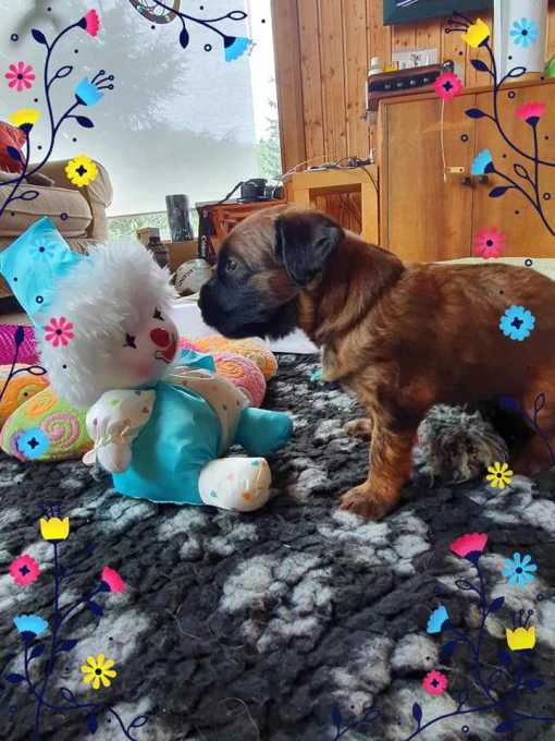 Ch. Franky de l`oreille noire ist ein Herz von einem Briard. Ein sehr liebevoller Rüde von mittlerer Grösse. Sein ausgeglichener herzlicher und fröhlicher Charakter der auch sein Temperament zeigt, zeichnet sein Wesen aus.